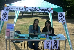 研究所からは、今年は「習字」のストールを出しました。同研究所の大学院日本語教育学研究科の学生が中心となり、準備および実施をいたしました。