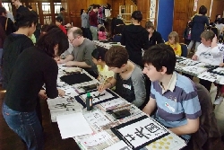 研究所からは、今年は「習字」のストールを出しました。同研究所の大学院日本語教育学研究科の学生が中心となり、準備および実施をいたしました。